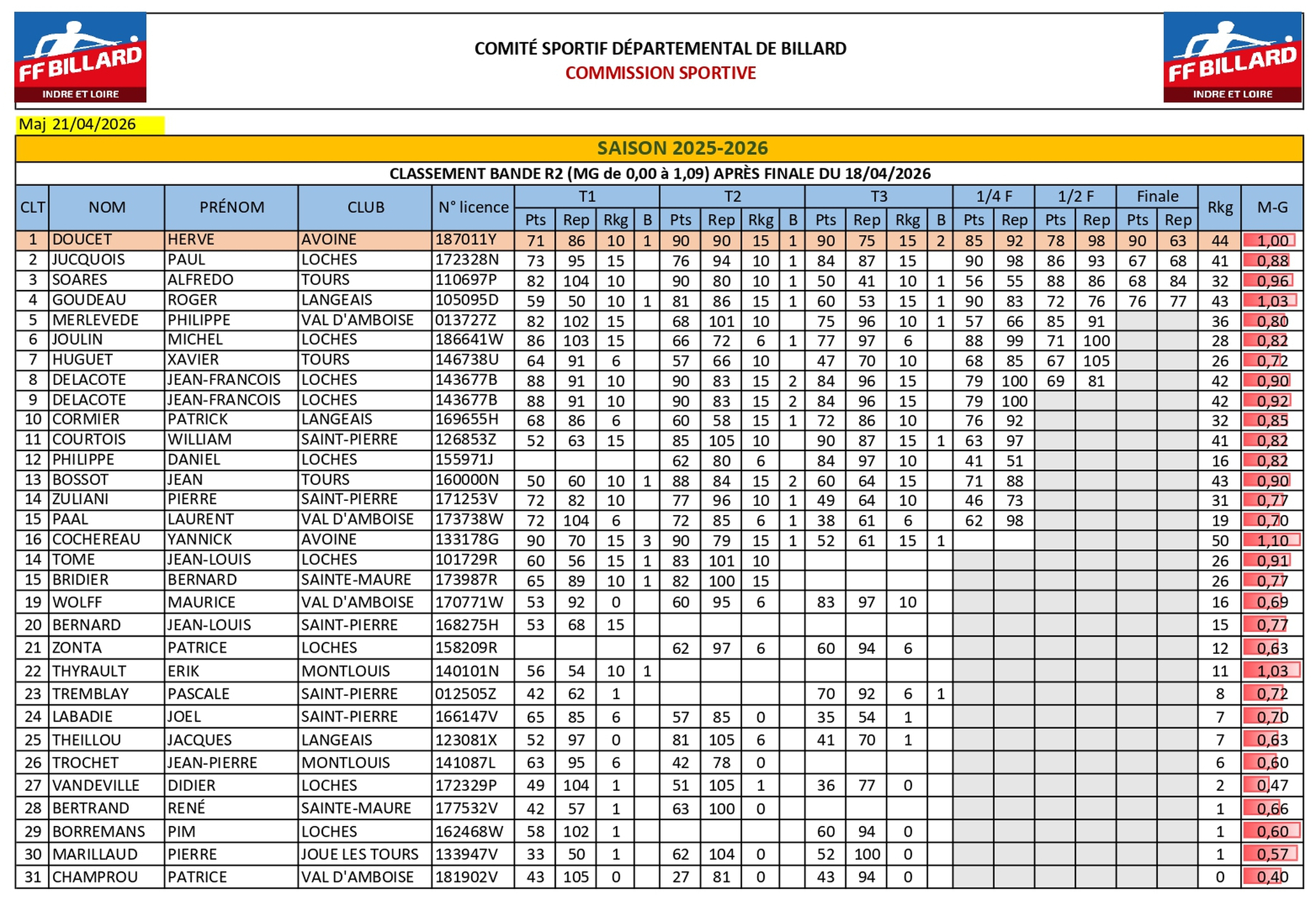 SDB 37 - Bande R2 : résultats saison 2025/2026