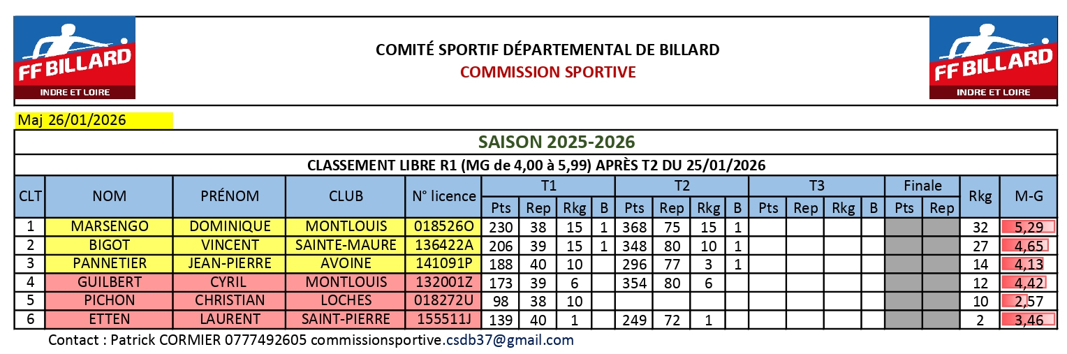 Libre R1 classement après le T2