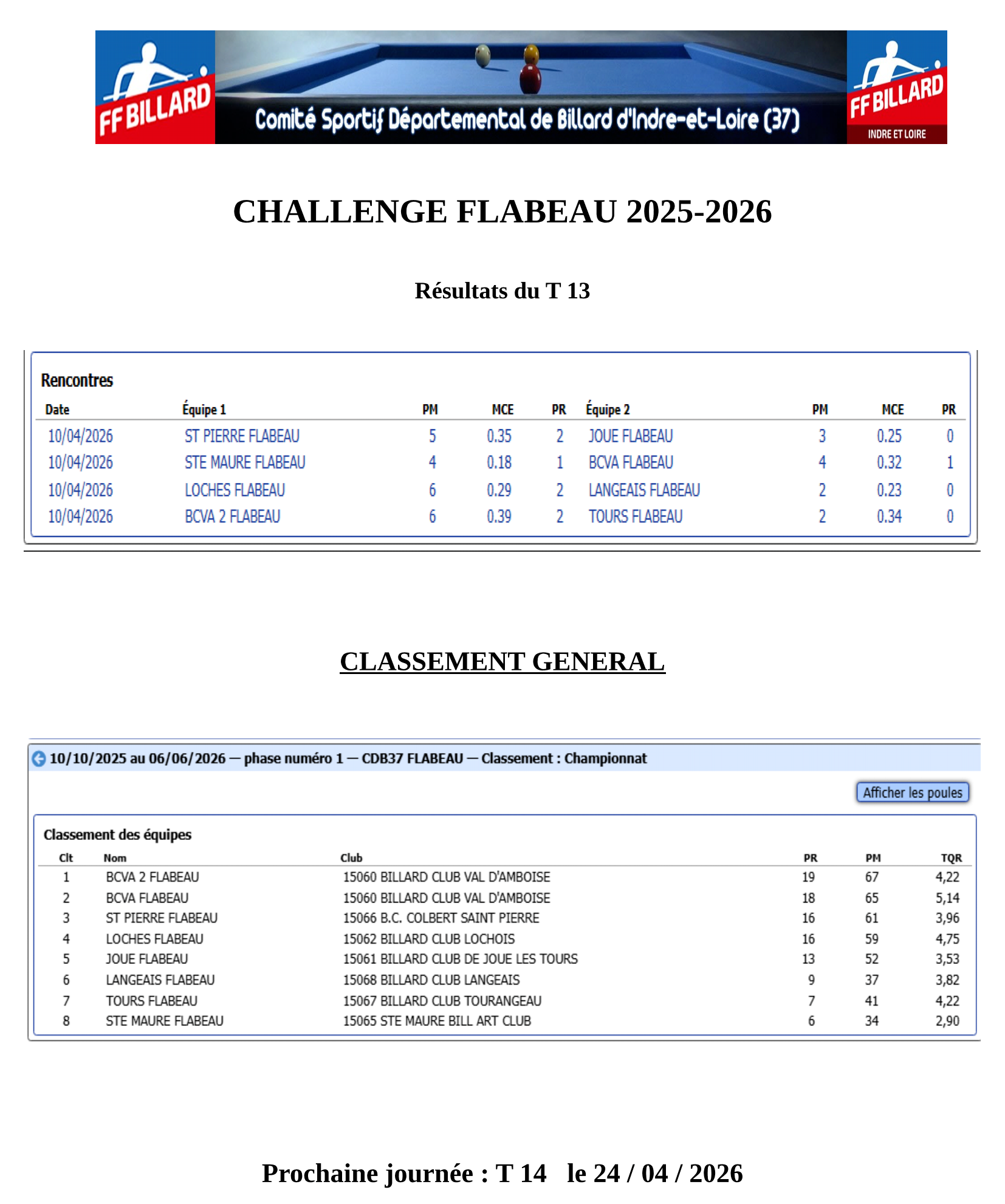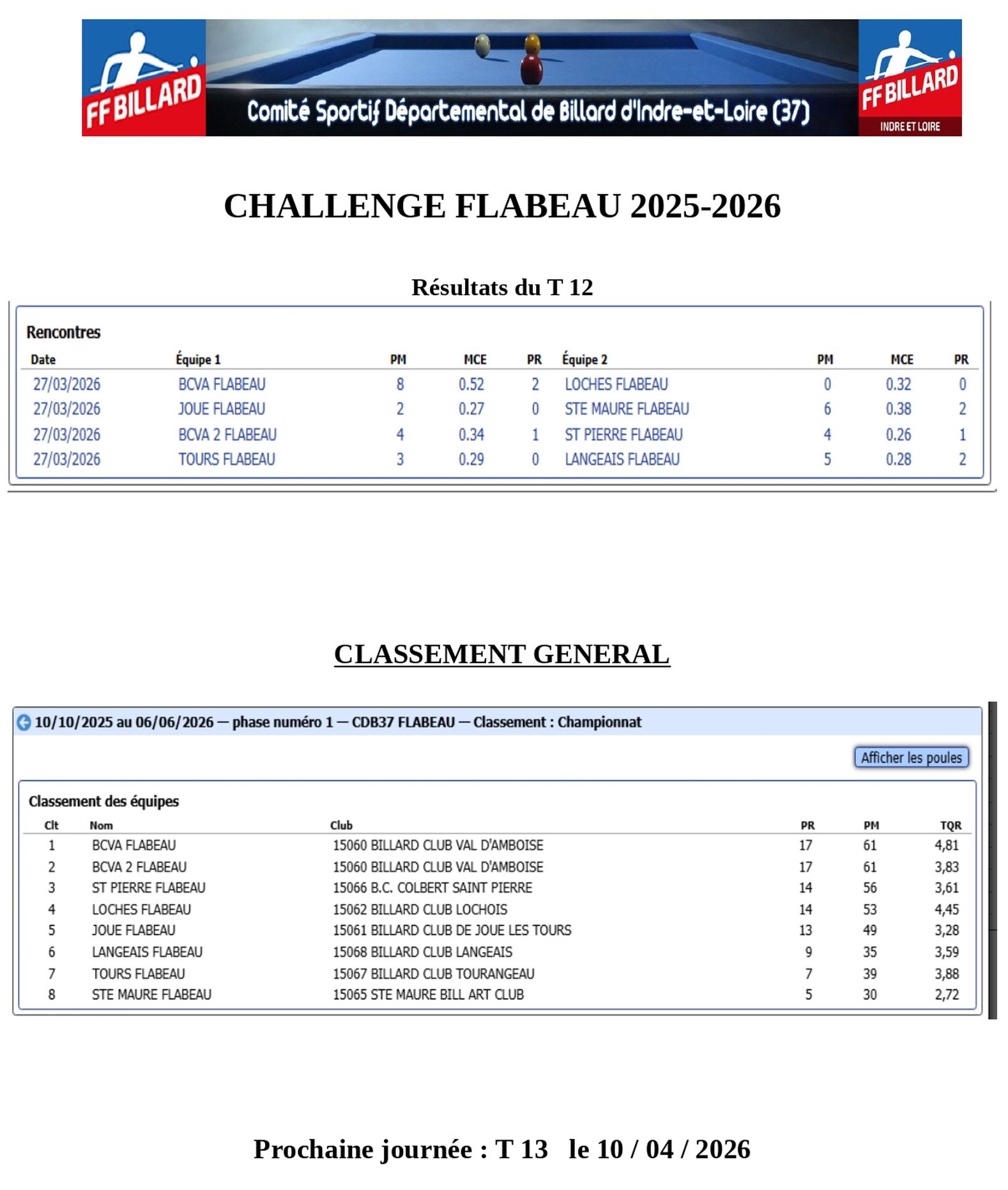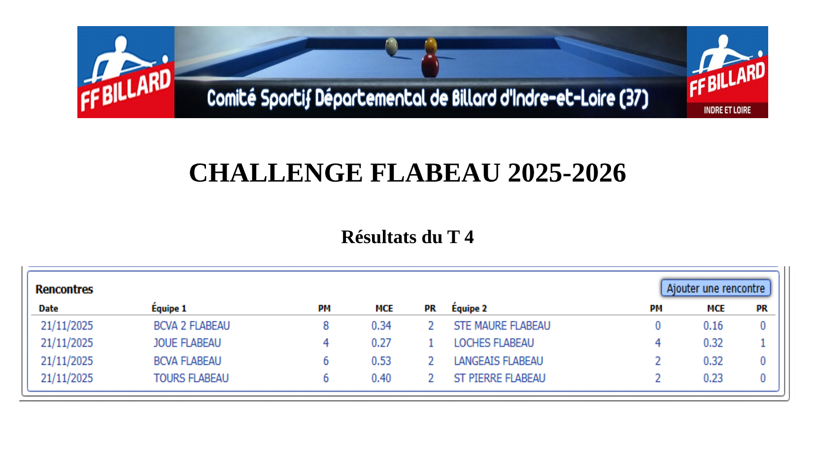 CSDB 37 - Challenge FLABEAU : Résultats 2025/2026