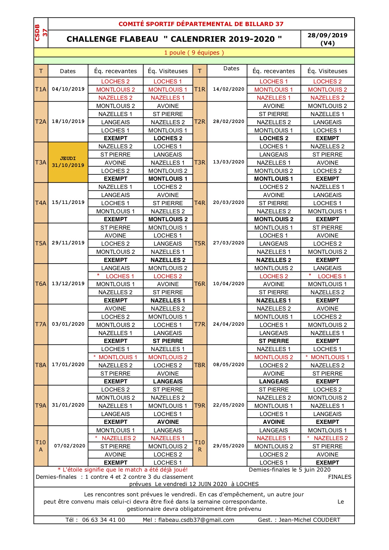 CSDB 37 - Calendrier Challenge Flabeau saison 2019-2020