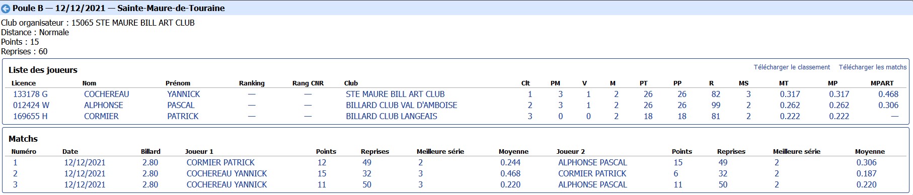 Visualisez ci-dessous les résultats du 3 Bandes R2 saison 2021/2022.