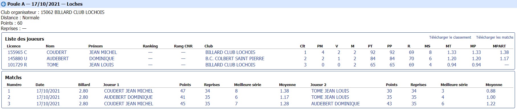 our n°3 : Les vainqueurs des 3 poules sont: poule A de Loches: Jean-Pal Berruet(Loches) - poule B de Montlouis: Claude Honnet (Loches) - poule C de Loches: Dominique Audebert (Saint-Pierre)