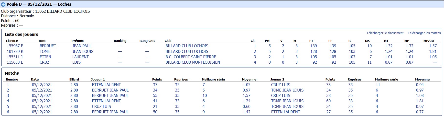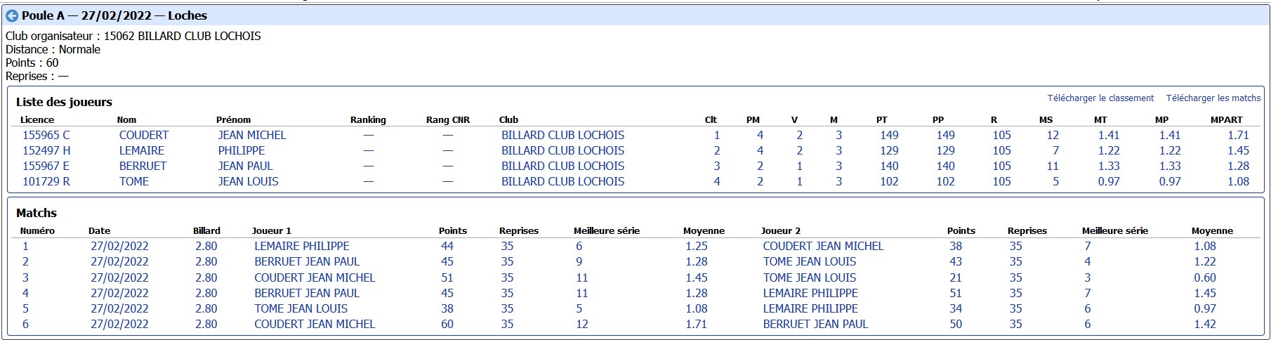Les 2 premiers de chaque poule, qualifiés pour la finale de comité du 27 mars prochain à Loches sont: