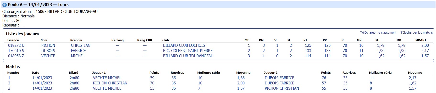 Dans la poule A de Tours, c'est Yves Tournier (Montlouis) qui l'emporte devant Christophe Leconte (Loches) et Michel Vechte (Tours).