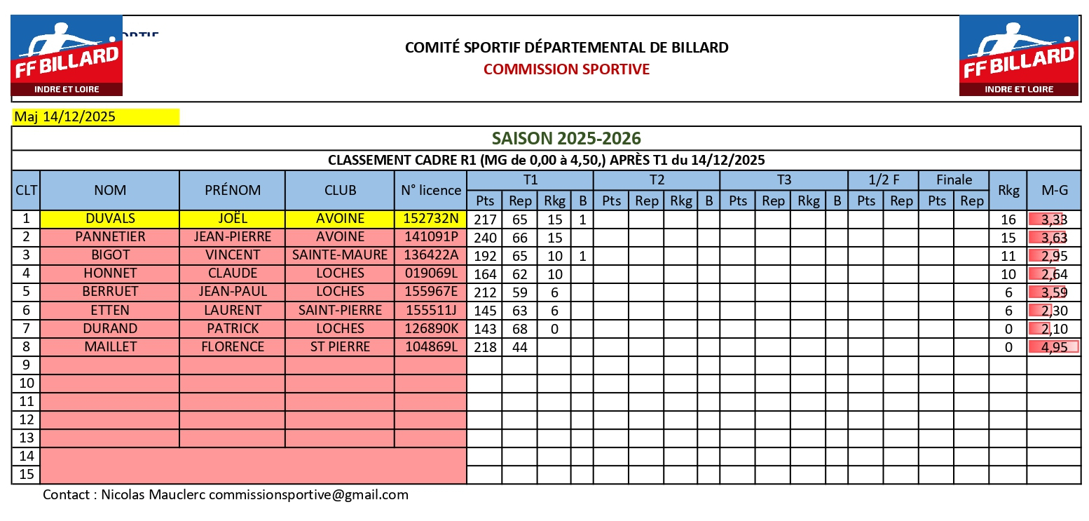 Cadre R1 : classement après le T1 |