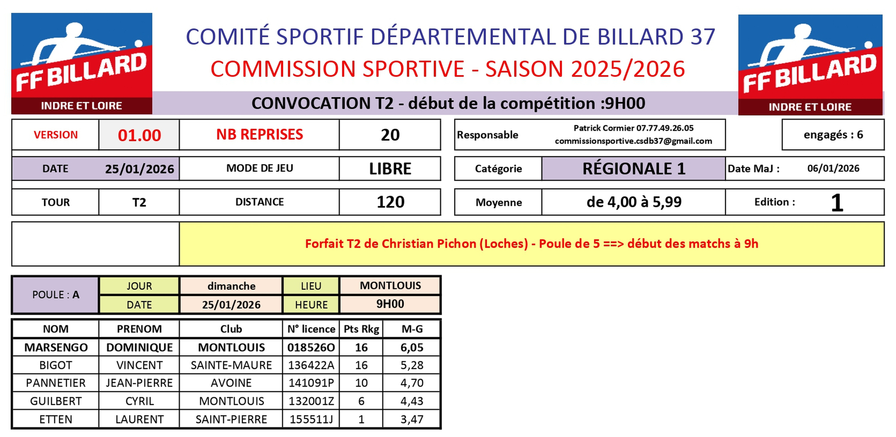 logo convocationsLibre Régionale 1 : Convocation T2 du 25/01/2026