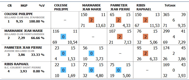 tour 2 : Le vainqueur de la poule est Philippe Colesse (Val d'Amboise)