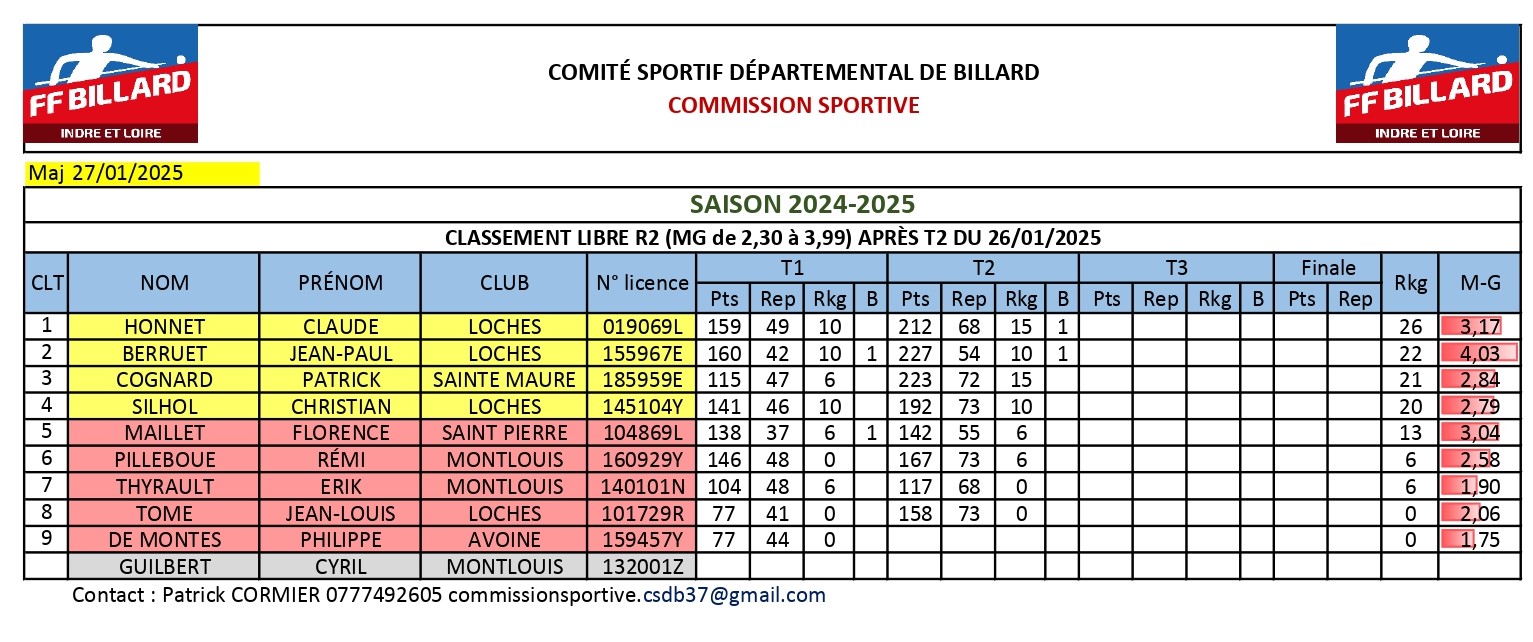 CSDB 37 - Libre R2 ranking saison 2024-2025