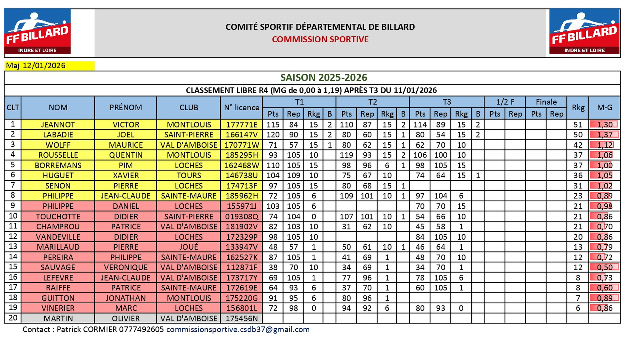 CSDB37 2025 2026 Libre R4 classement T1 V2