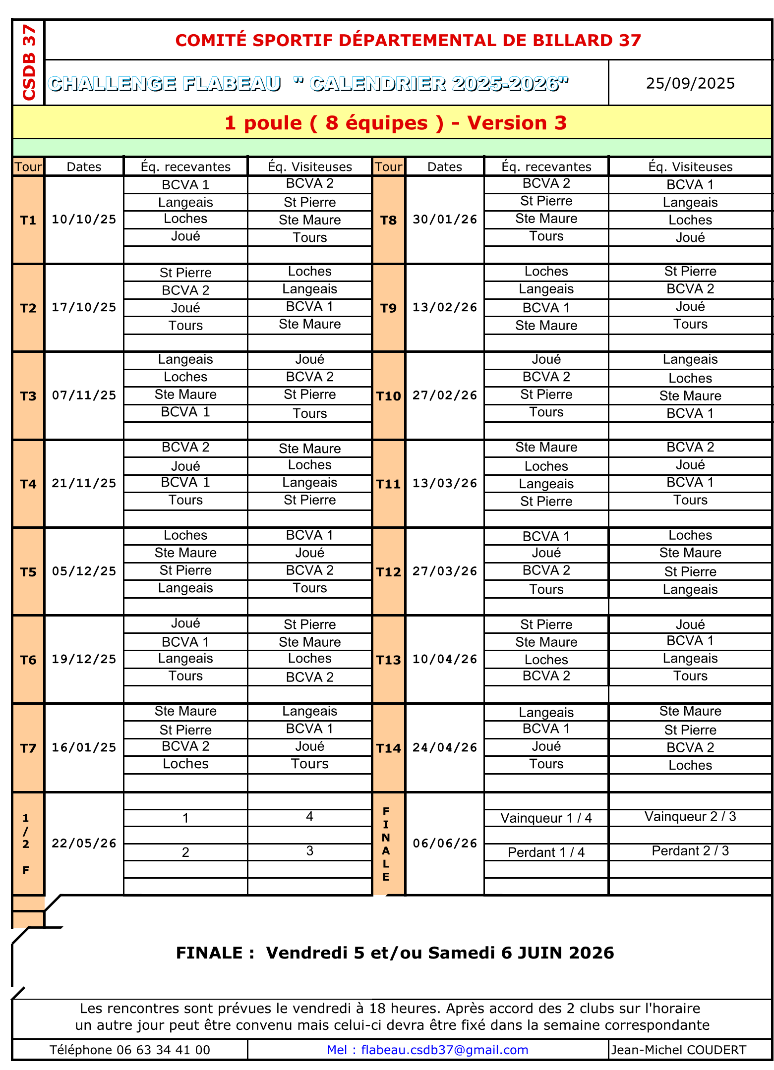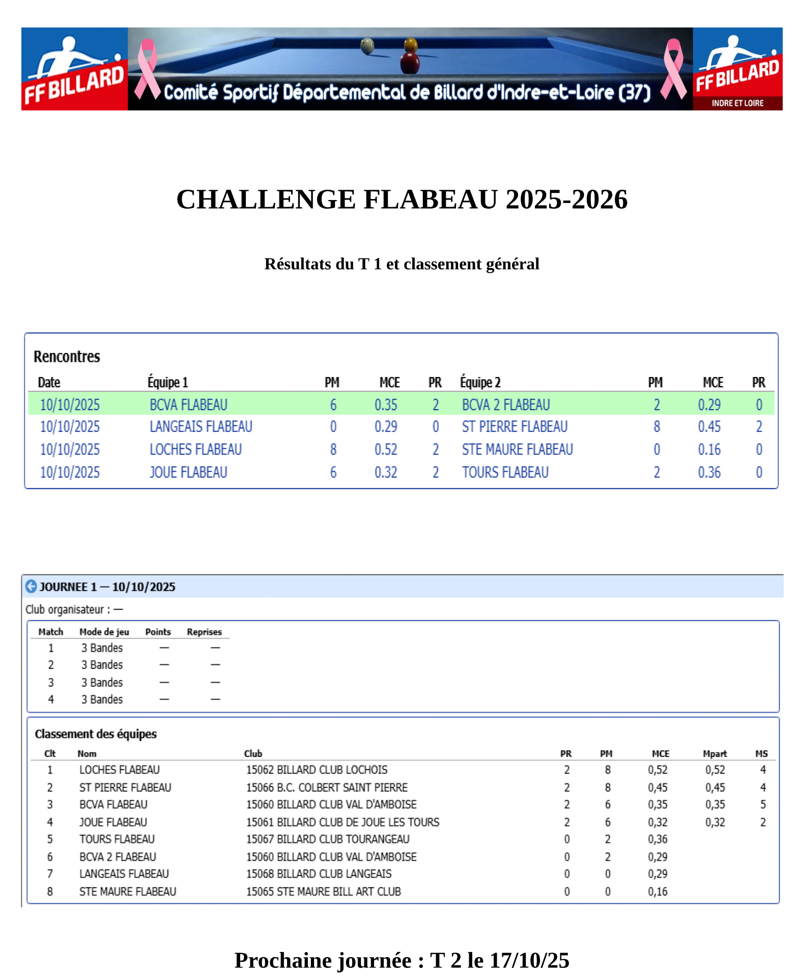CSDB 37 - Challenge FLABEAU : Résultats 2025/2026