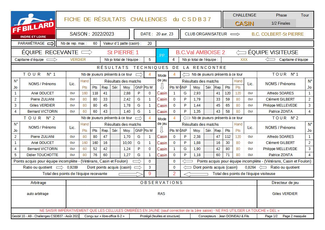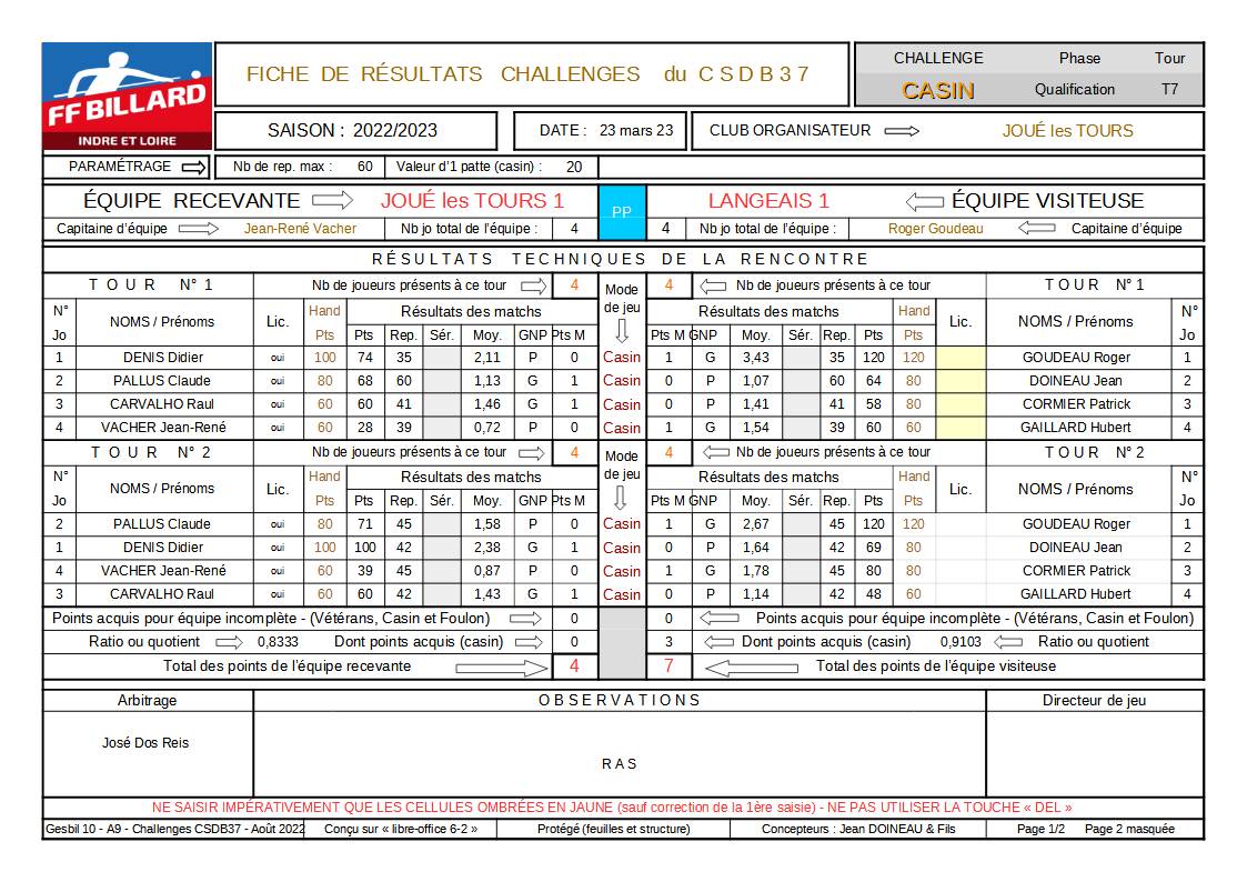 RÉSULTATS CHALLENGE Guy Compagnon 2022/2023