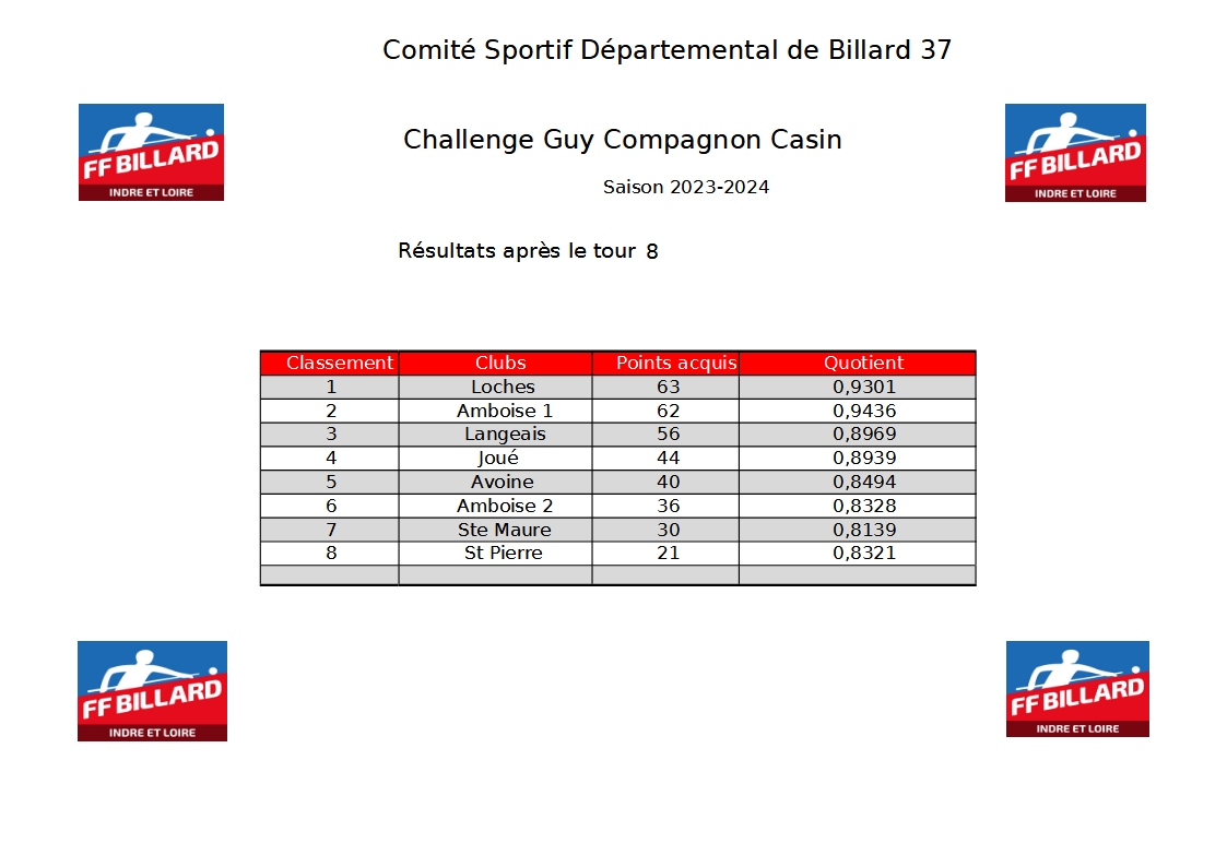 CSDB 37 - Challenge Casin Guy Compagnon : résultats 2023/2024