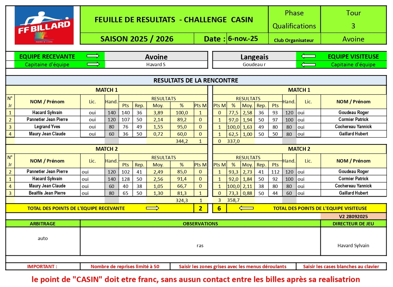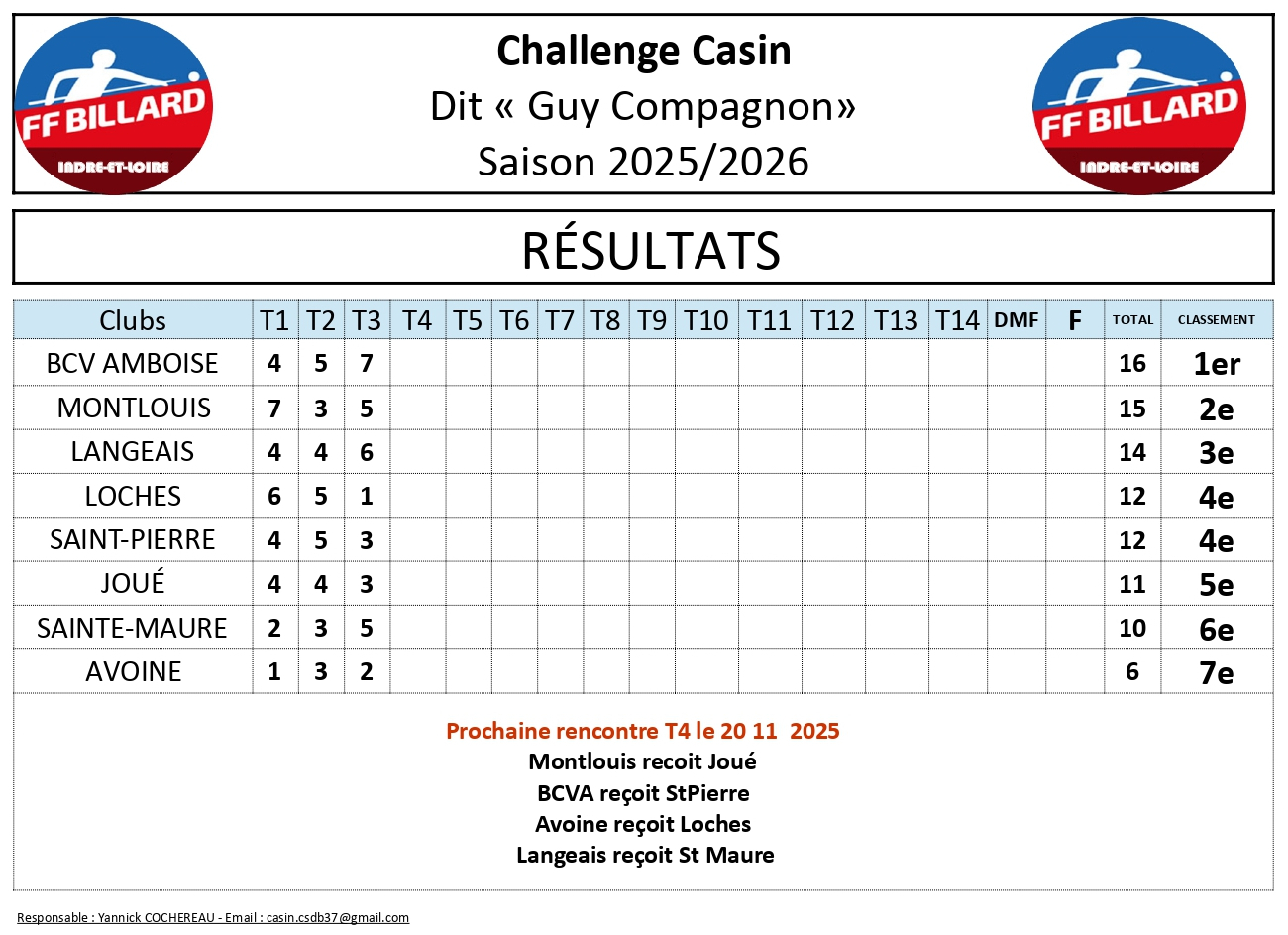 RÉSULTATS CHALLENGE GUY COMPAGNON 2025/20267