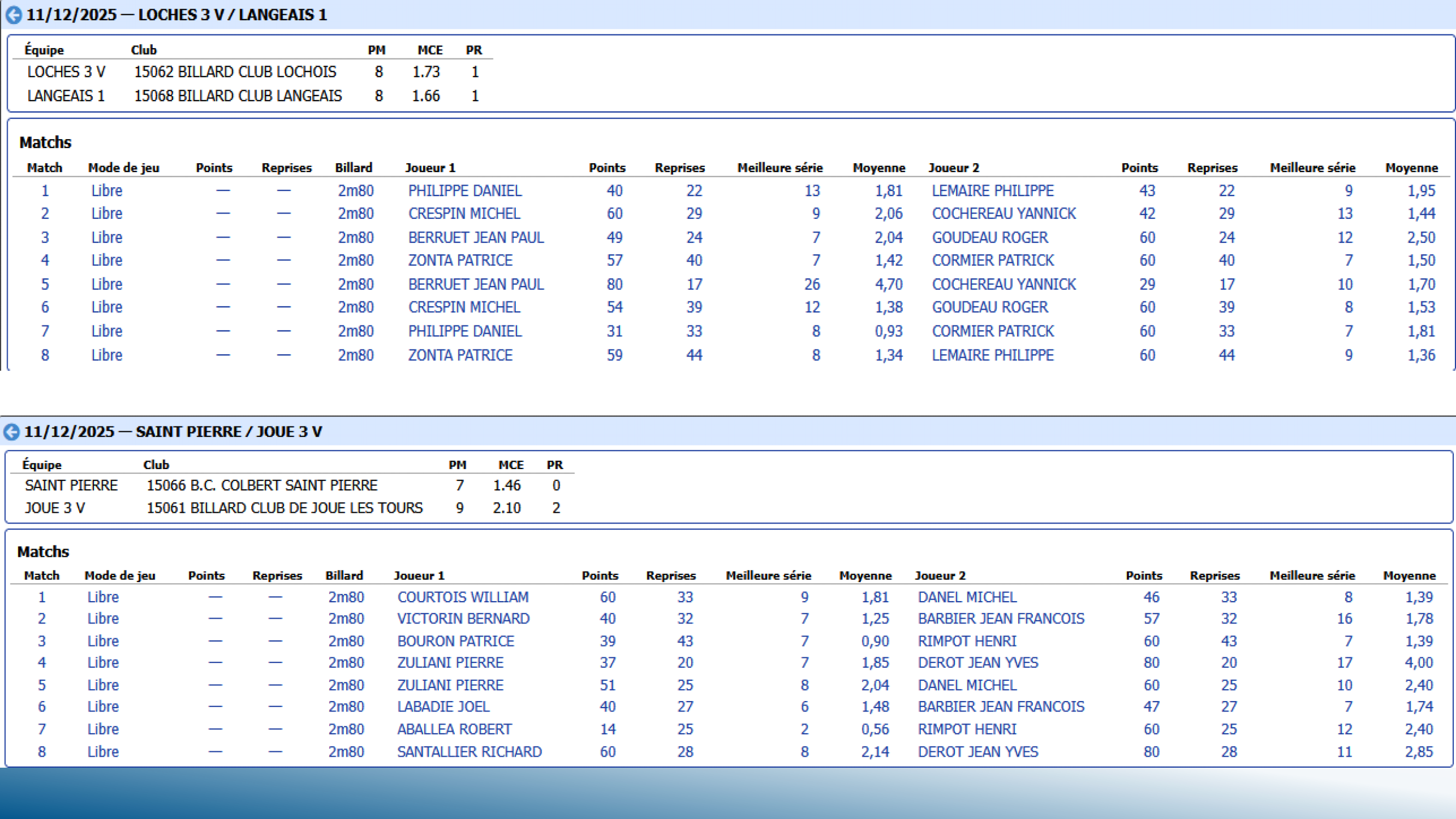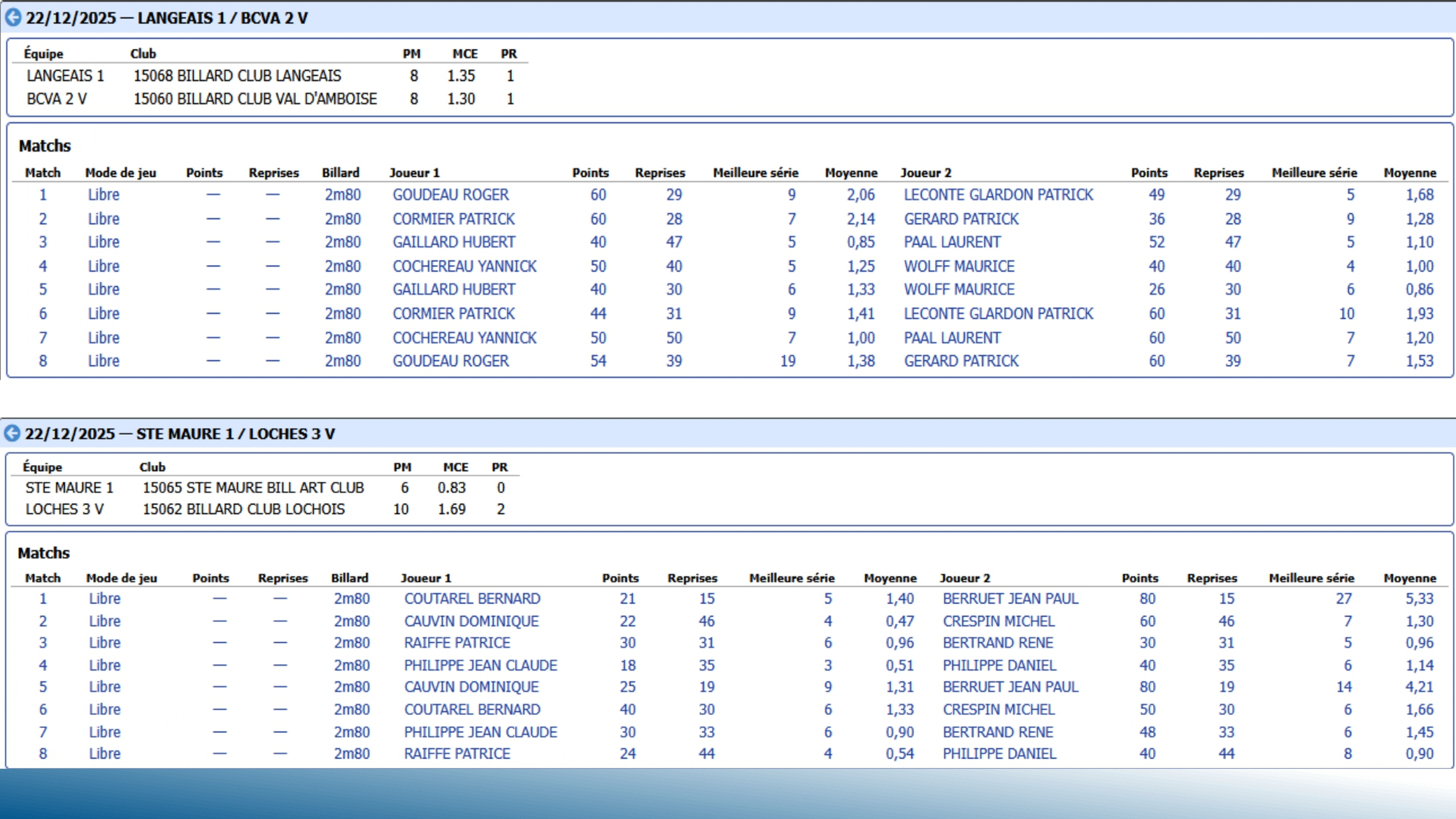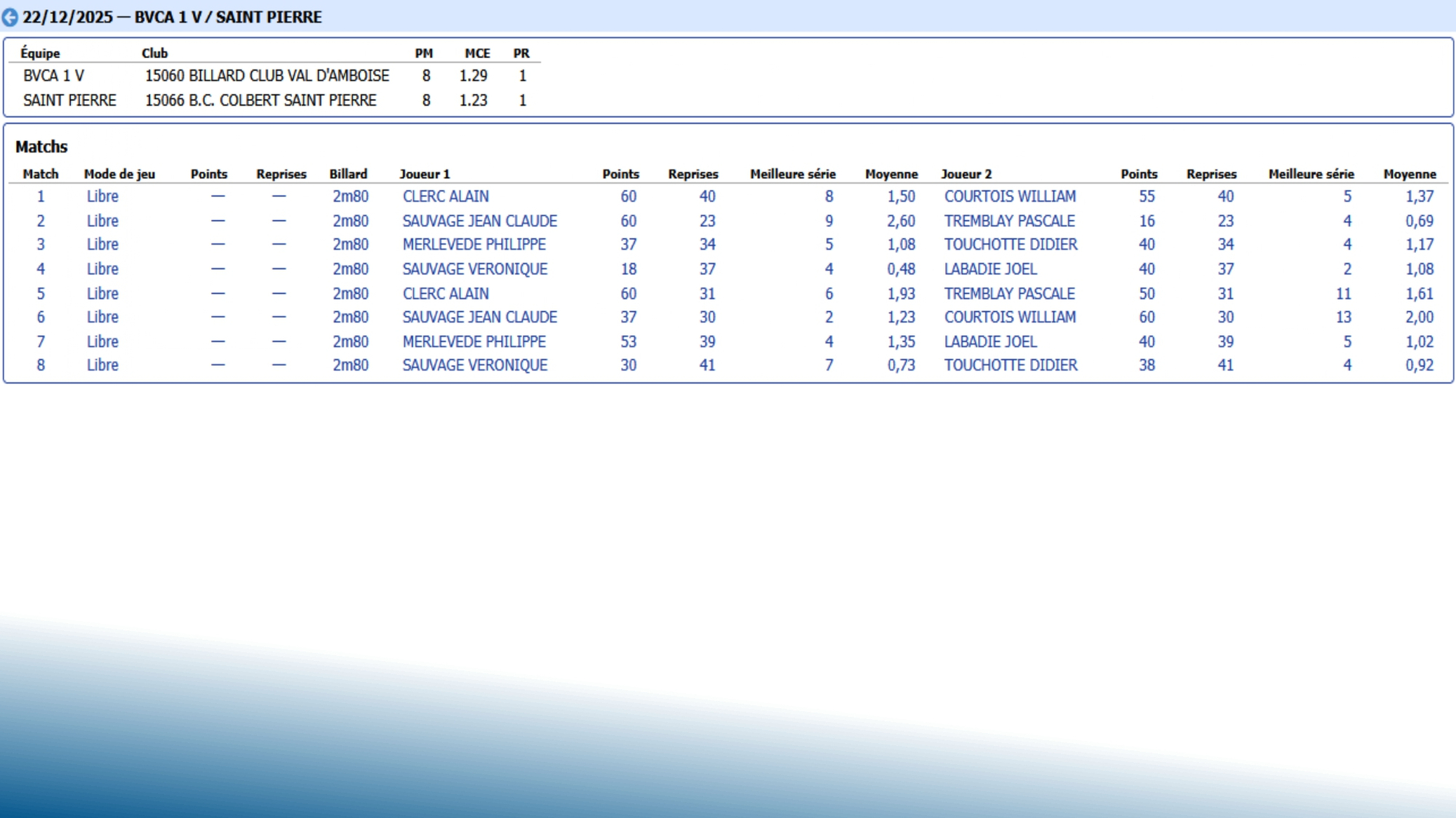 Les joueurs doivent avoir leurs licences à jour sur le site FFB pour pouvoir participer au challenge vétérans qui, je le rappelle, est une compétition comme les autres.