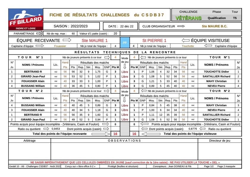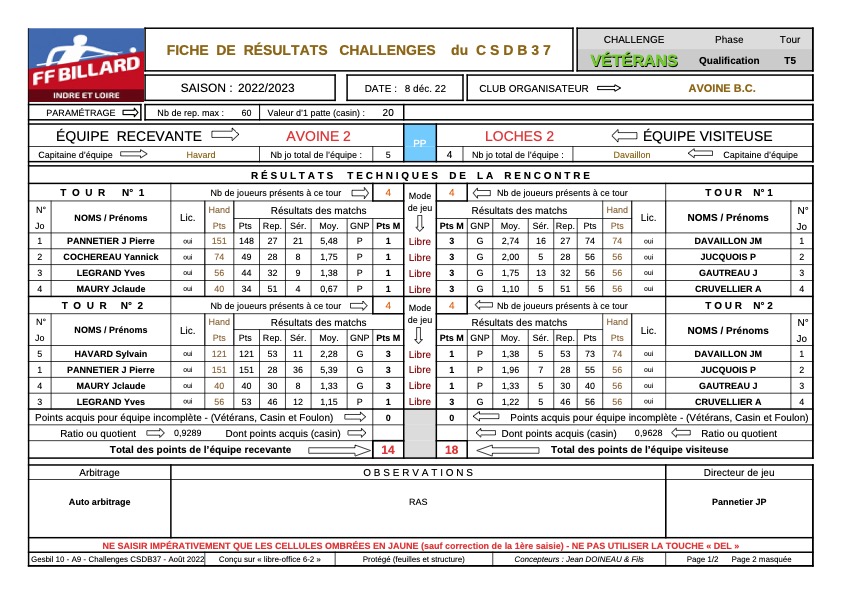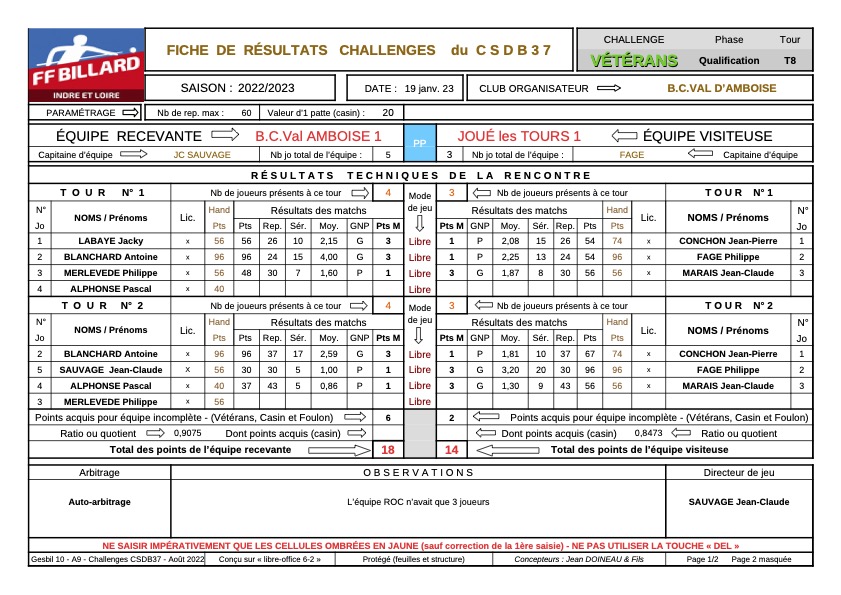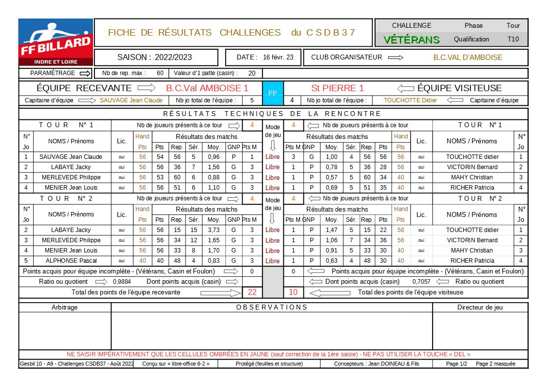 dans les feuilles de match vétérans je ne visualise pas les résultats du T6 AVOINE 1/ ROC 1