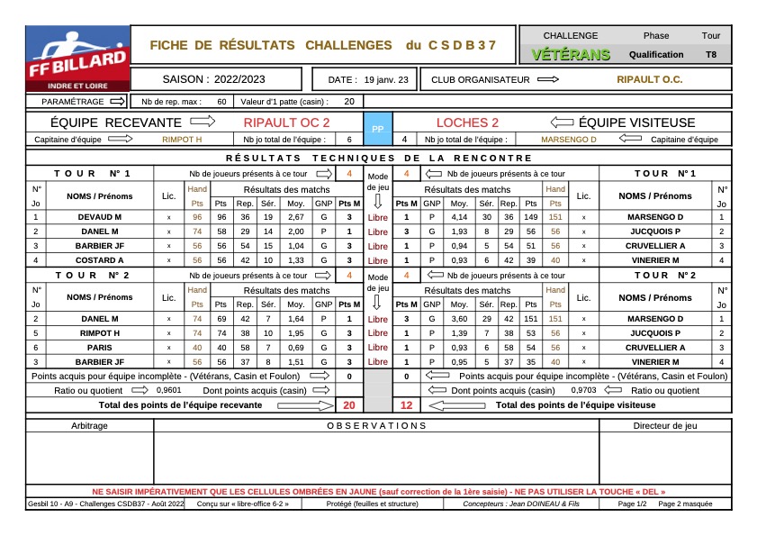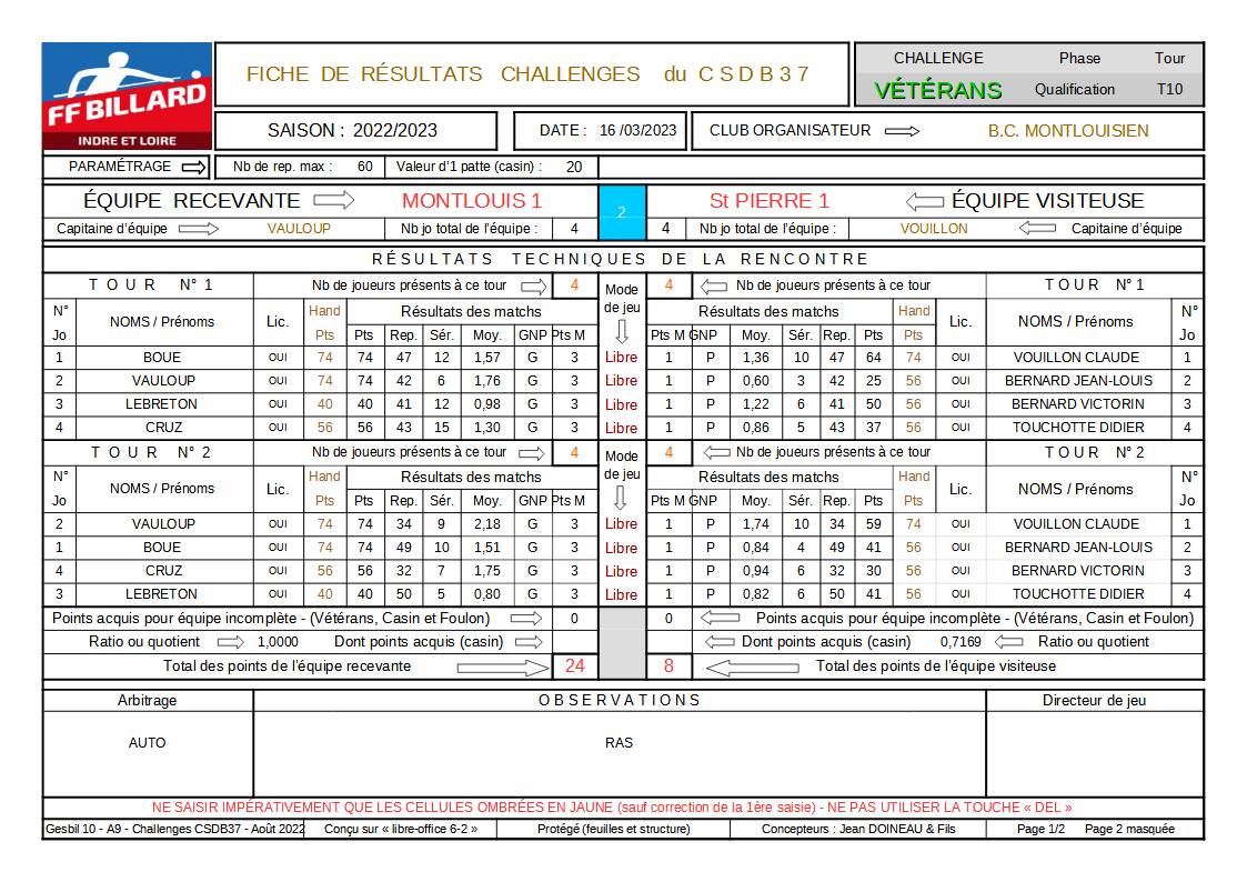 RÉSULTATS CHALLENGE VÉTÉRANS 2022/2023