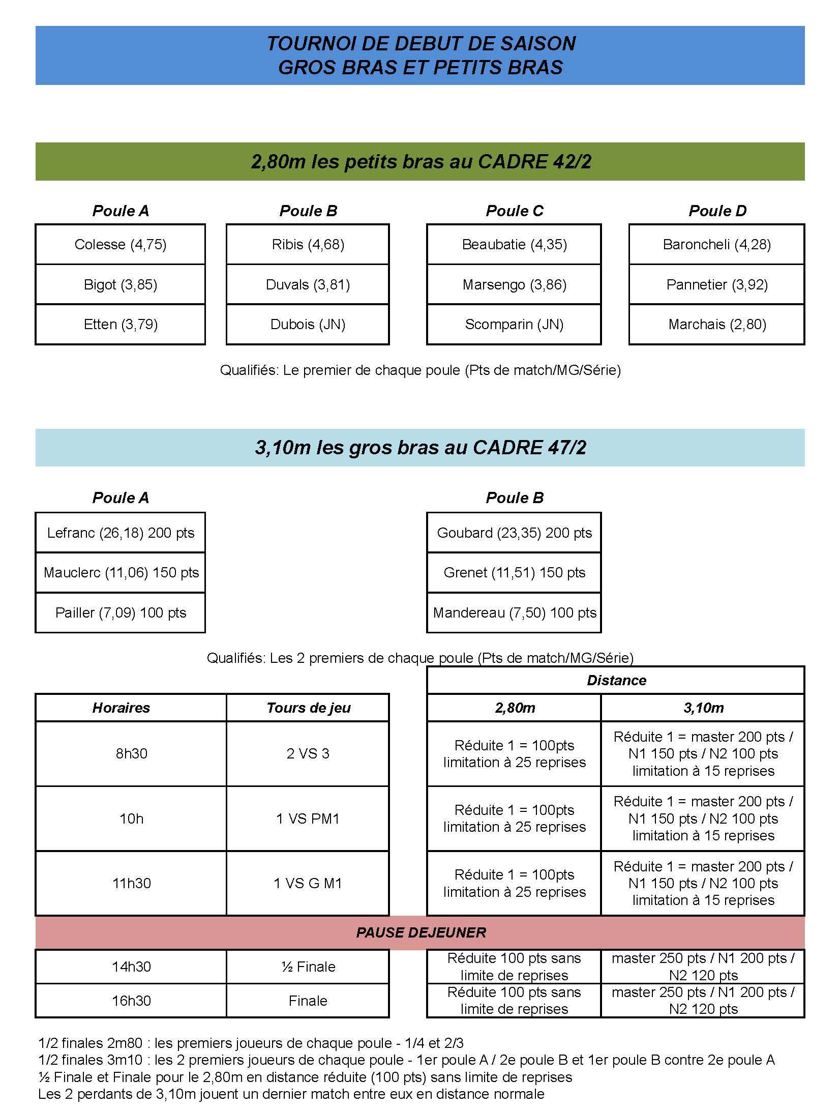 12 joueurs de niveau N3 se rencontreront sur 4 billards 2m80.